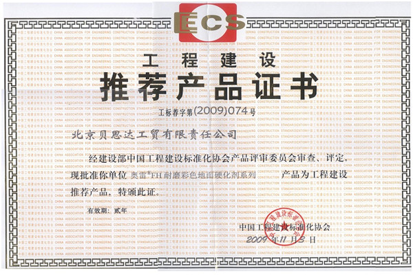 • 推薦產品證書